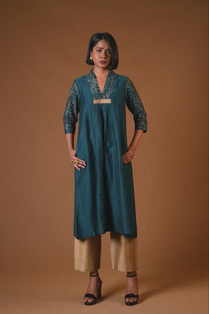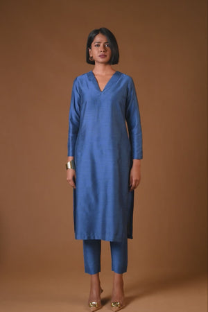 Jasmine Petrol Blue Silk Kurta Set